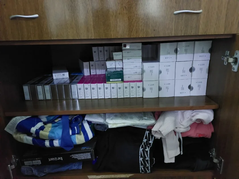 При претресите пронајдени и одземени се поголемо количество на медицински лекови и помагала (филери, ботокс, хилурон), 39.285 евра, 2490 швајцарски франци и 26.000 денари, патничко возило марка „порше“, поголема количина на парфеми и декларации за истите, мобилни телефони, тревкаста материја и др.